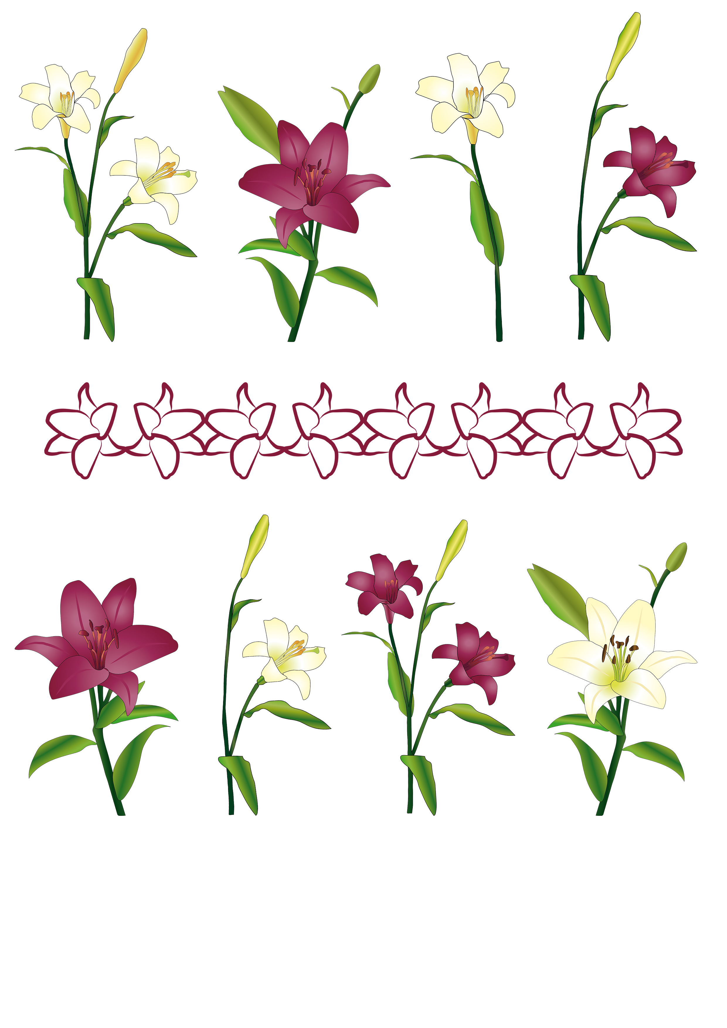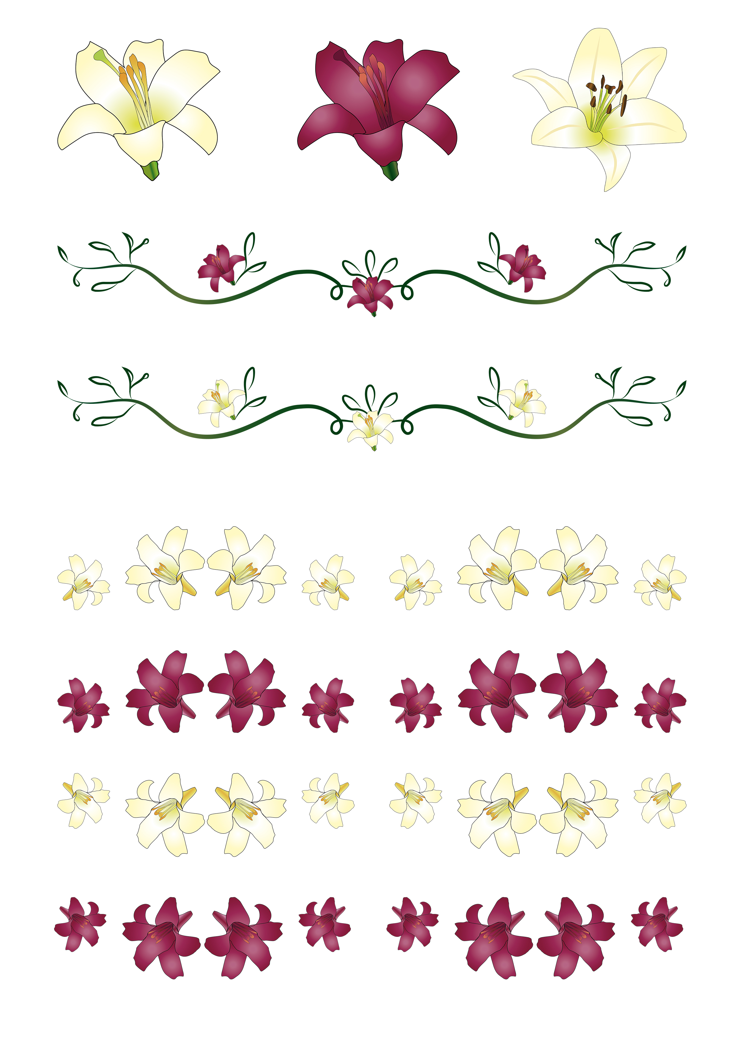 Cliparty lilii zaprojektowane na potrzeby fotoalbumu.