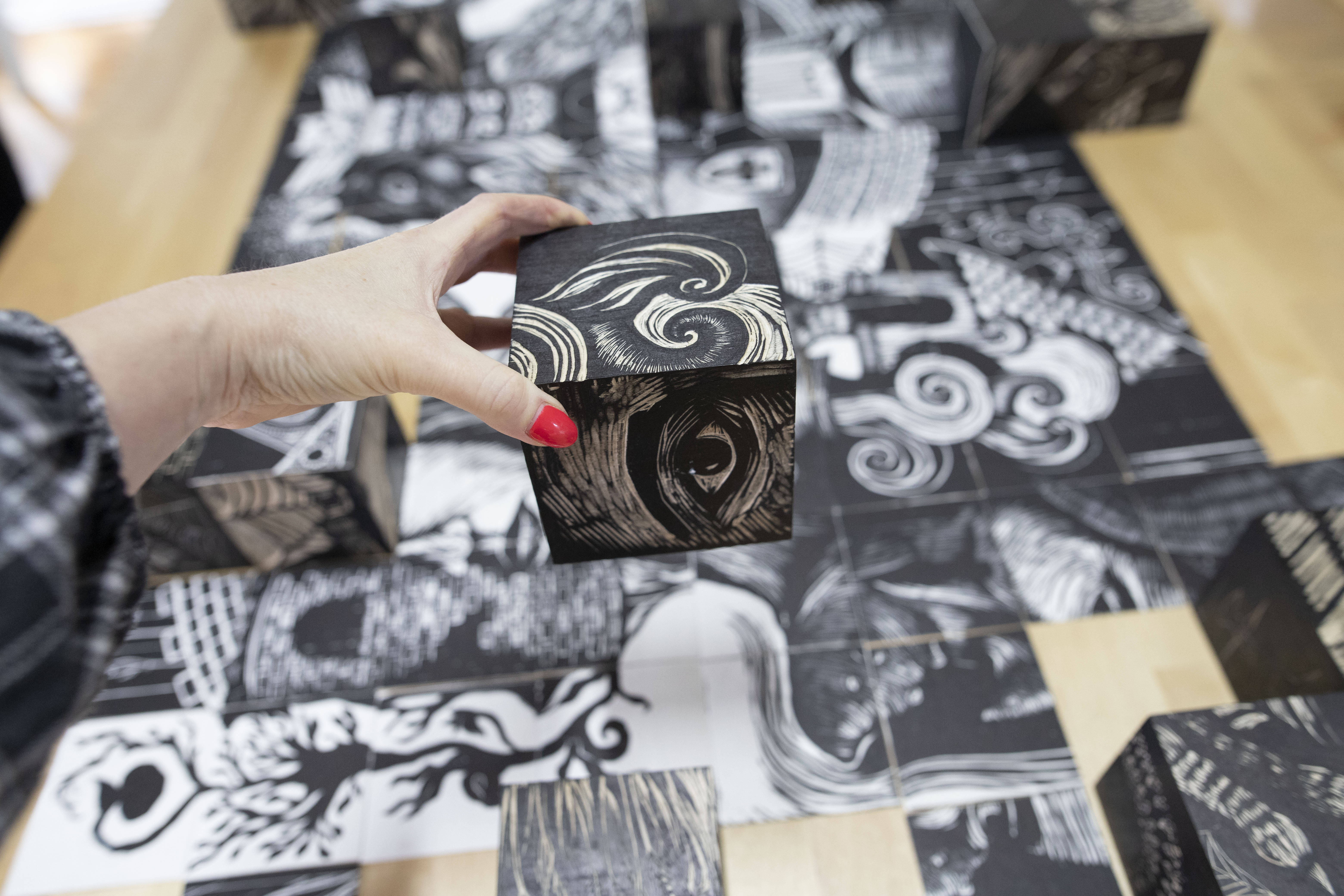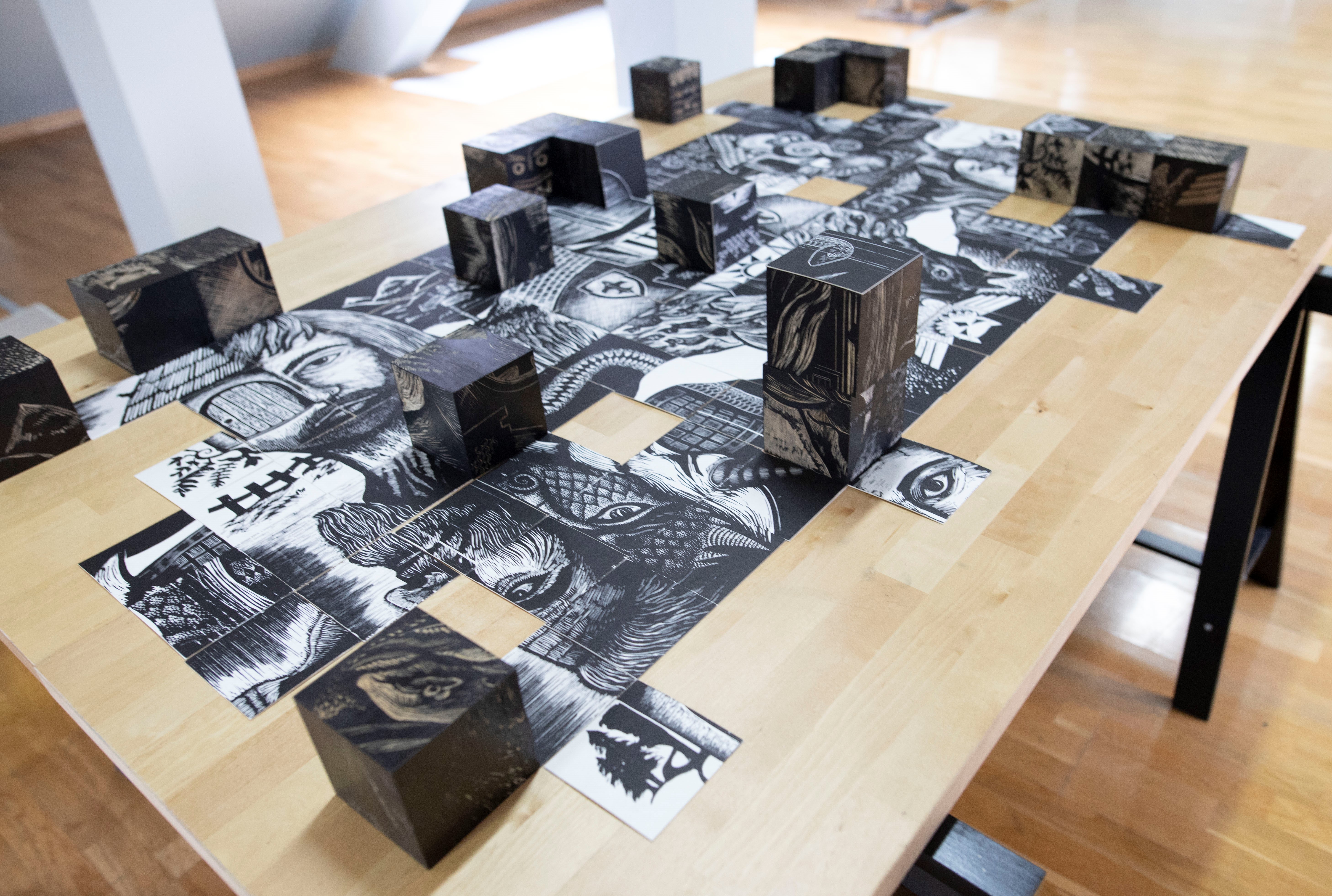Praca składa się z dwudziestu drewnianych sześcianów o rozmiarze 10x10x10cm, które są matrycą pod zestaw drzeworytów. Są one również osobnym obiektem, który nawiązuje do dziecięcej zabawki, drewnianych klocków z obrazkami. Klocki po ułożeniu tworzą sześć podstawowych grafik, które złączone razem tworzą swego rodzaju mapę bajek. Swoją formą, praca dyplomowa prowokuje odbiorcę do ingerencji, dopuszcza ona bowiem dowolne układanie drewnianych klocków i grafik. Tworzy to rodzaj gry, w której planszą jest mapa bajek, a przemieszczanie jej elementów obrazuje przenikanie się historii i kształtowanie nowych kompozycji. Tematyką pracy są bajki w ujęciu ogólnym, teoretycznym. Główną inspiracją były natomiast badania rosyjskiego literaturoznawcy Władimira Proppa nad morfologią bajki magicznej. Na podstawie owych badań powstały grafiki, które obrazują postacie często pojawiające się w bajkach oraz ich atrybuty. Tytuł pracy prezentuje, że to nie tylko bajka, ale również gra, zabawa.