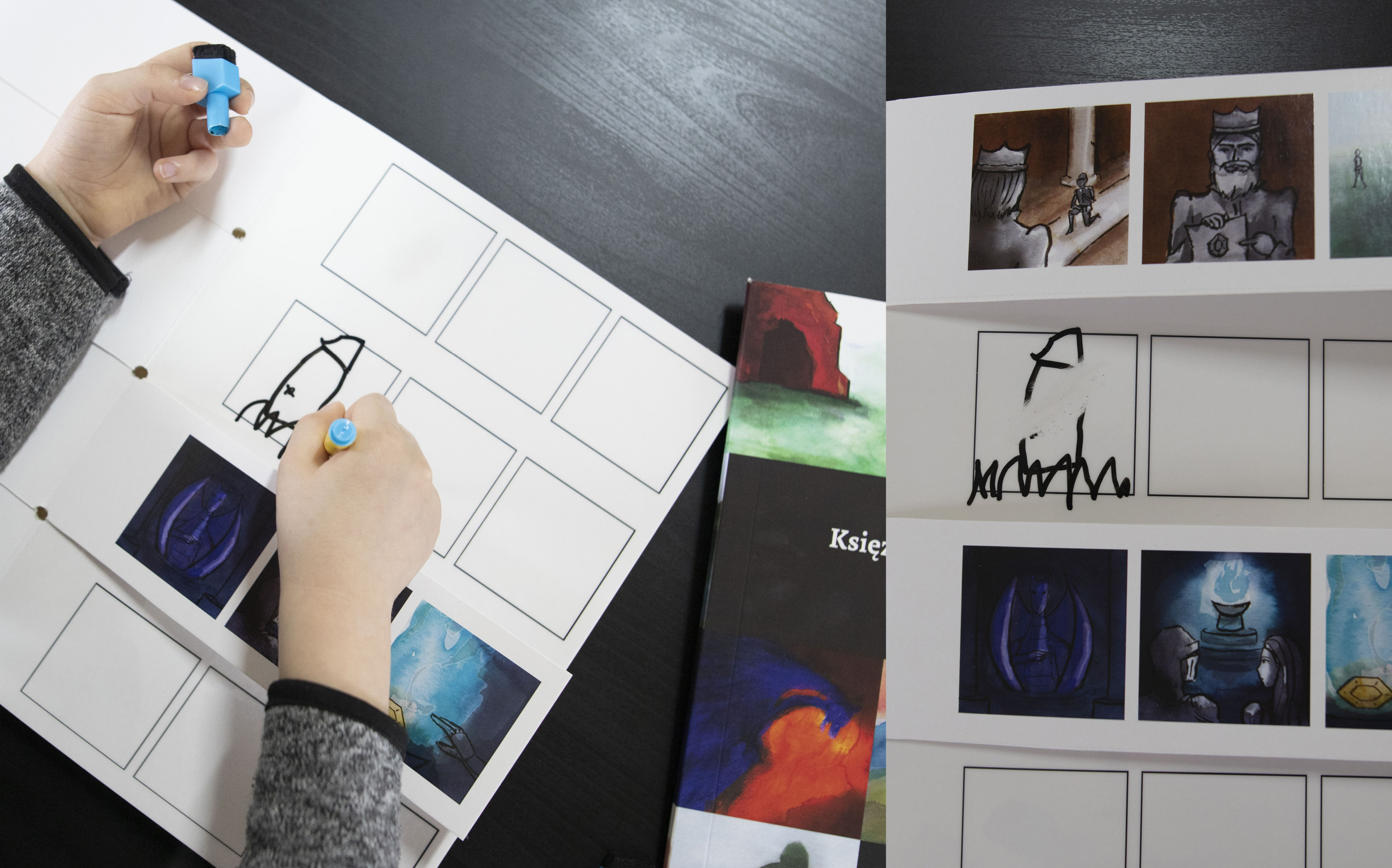 Miejsce na stworzenie własnej historii zostało pokryte specjalną folią do markerów ścieralnych. Poniżej zastosowanie w praktyce: