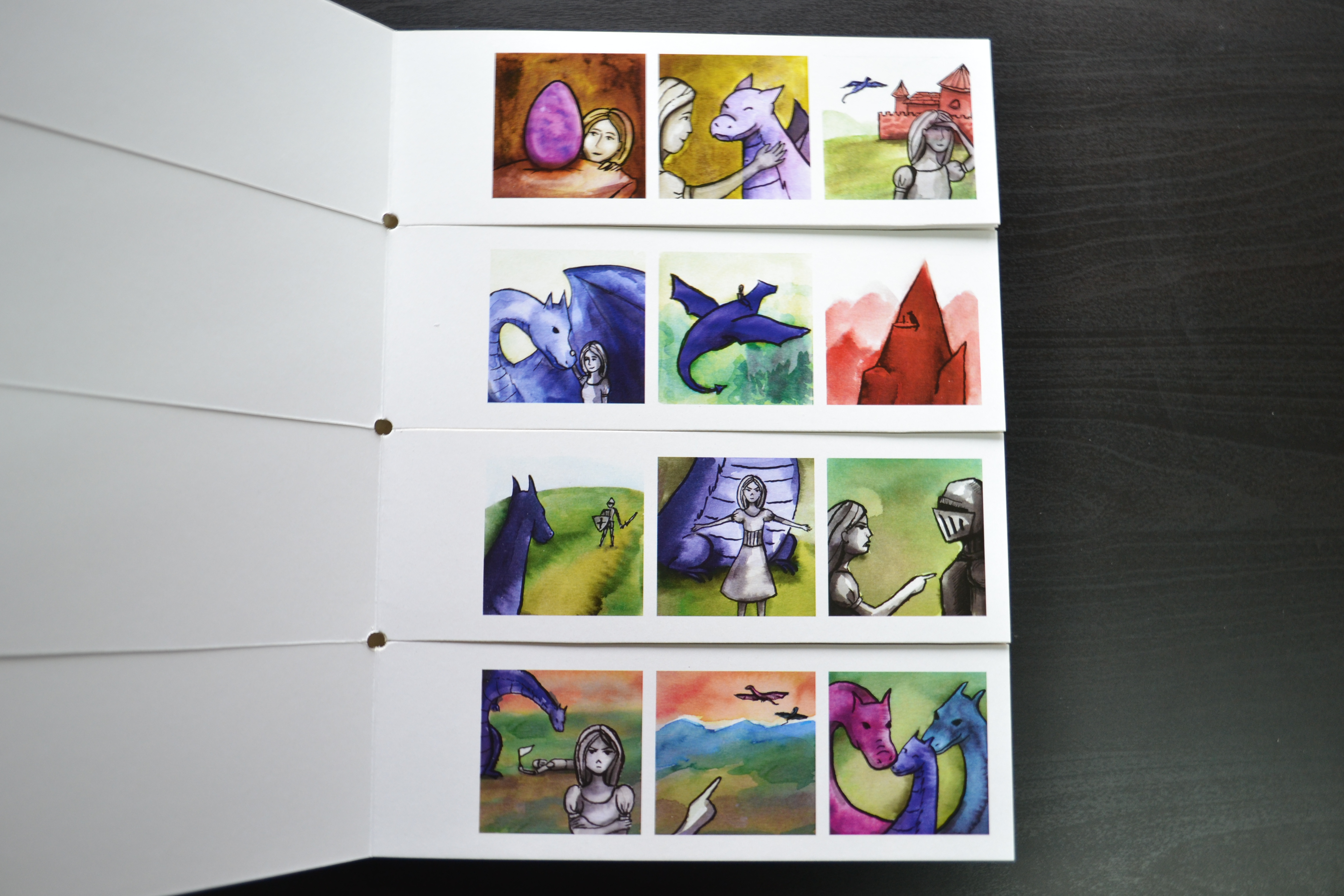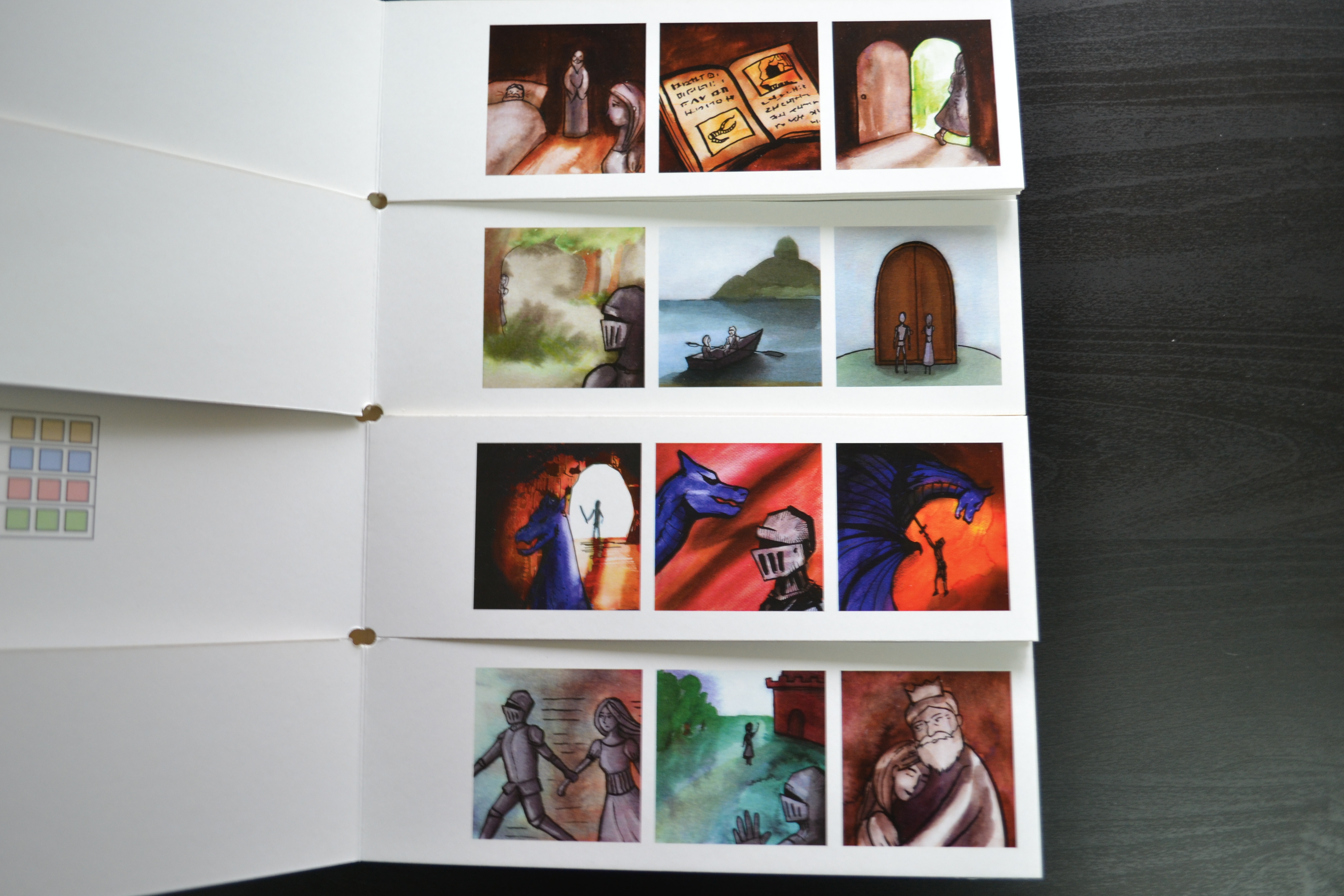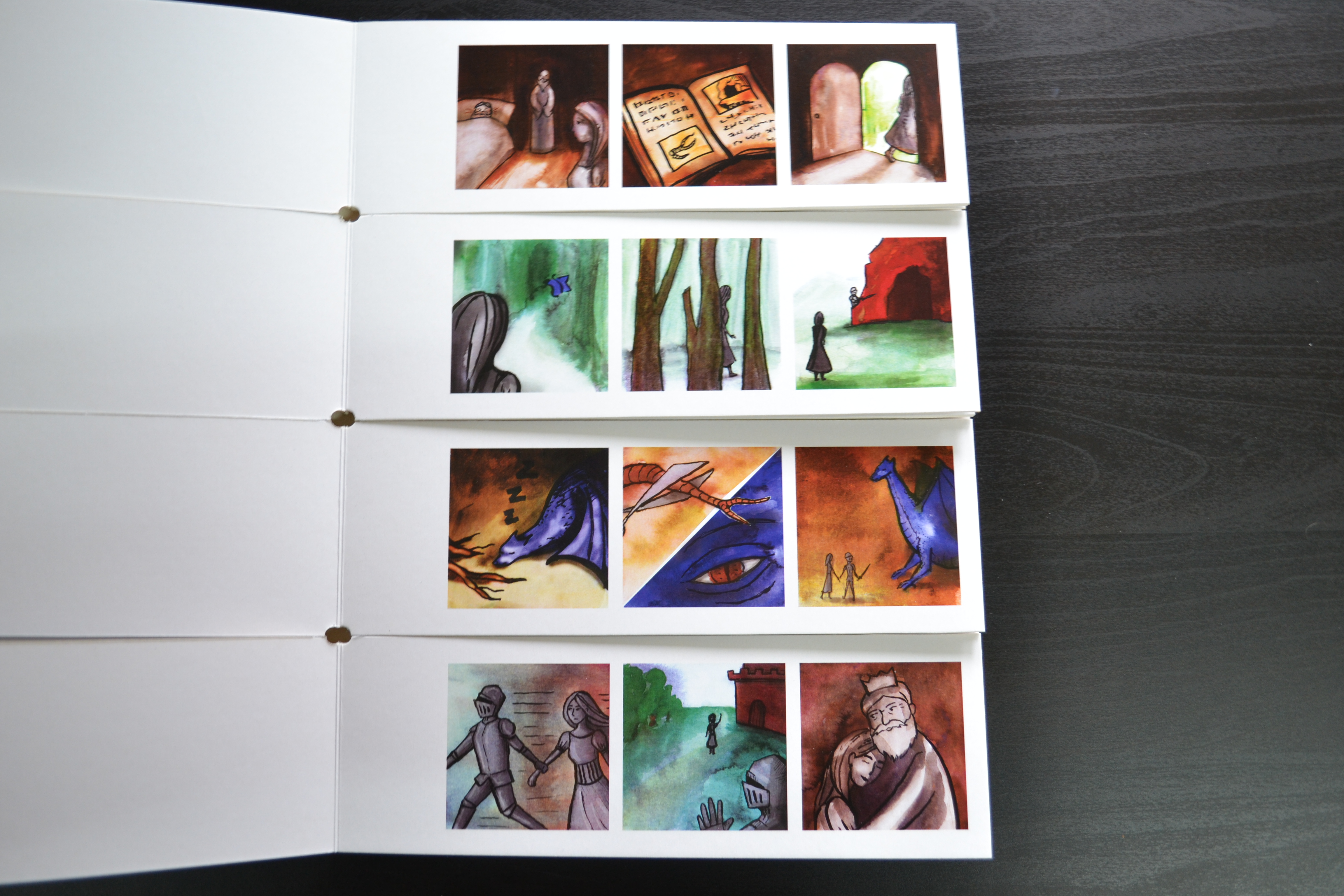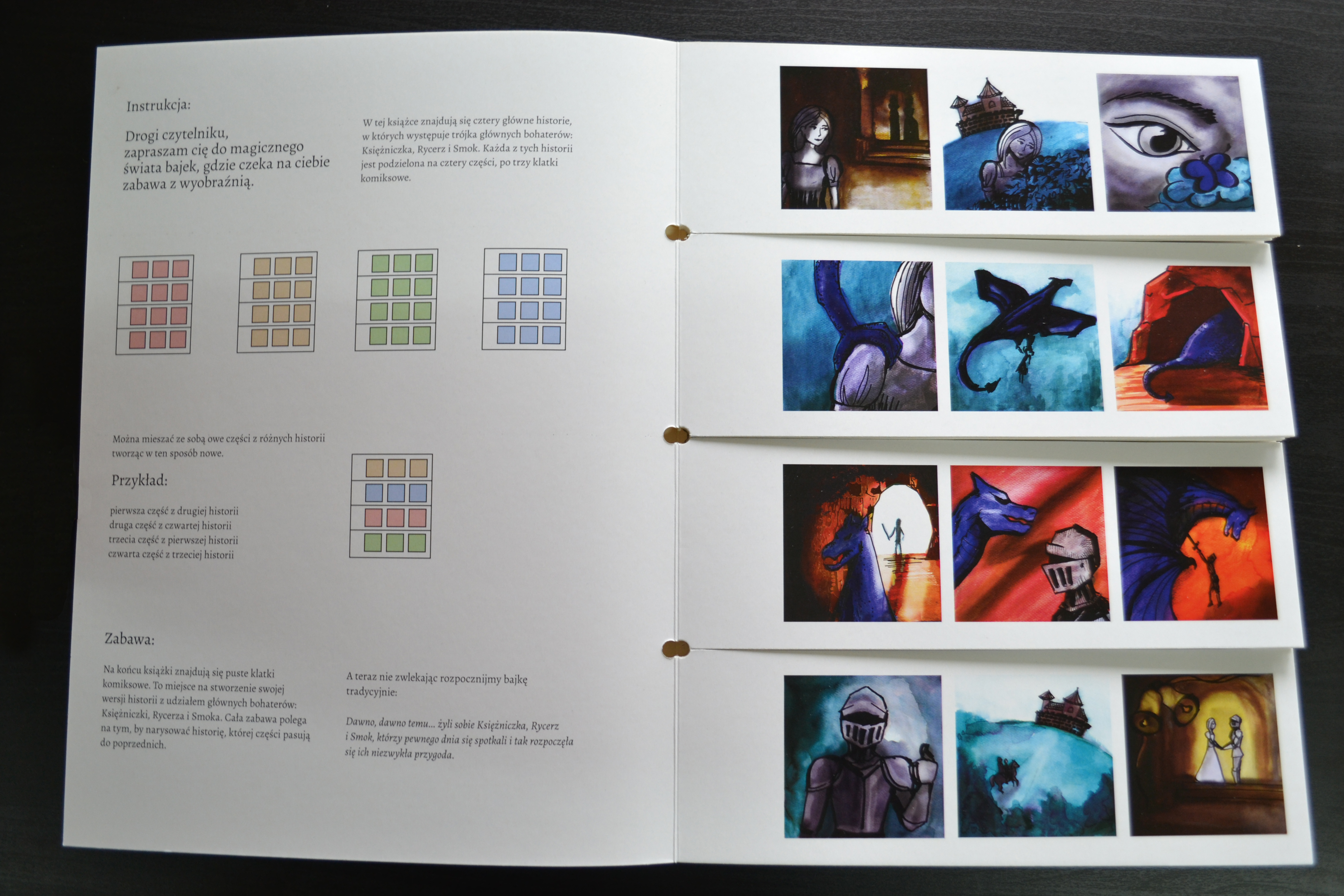 Praca jest w formie książki komiksowej, w której zaprezentowane są cztery główne historie, w których bierze udział trójka bohaterów: Księżniczka, Rycerz i Smok. Każda z tych historii jest podzielona na cztery rzędy po trzy klatki komiksowe w każdym. Forma książki po przez wprowadzenie nacięć po między rzędami umożliwia mieszanie ze sobą owych historii, tworząc w ten sposób nowe. Na końcu książki znajdują się puste klatki komiksowe, z których użytkownik może skorzystać, by stworzyć swoją wersję historii.